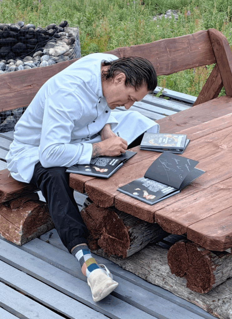 Конечно, предполагалось, что будет местная морская еда, но совершенно не предполагалось, что готовить и кормить нас будут два шеф-повара Сергей и Ирина, у которых имена, книги, программы. Что их сподвигло делать вкусно людям на краю географии в отсутствии цивилизации доподлинно не известно, возможно, отобранные паспорта, как они сами шутили, но так сложилось.